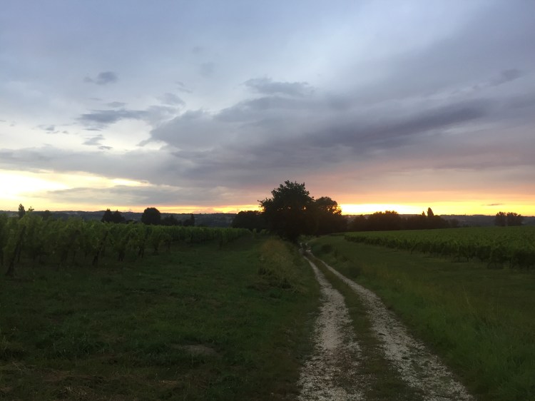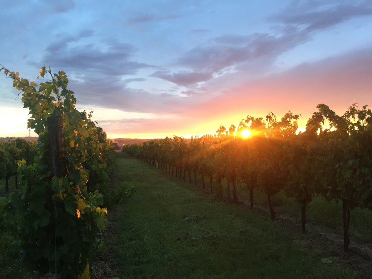 Just on the other side of the tree row are vineyards.
